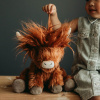 Ontmoet Hamish, de knuffelige Hooglandse Koe, een zachte metgezel van het gezelligste platteland! Met zijn zacht, ruig vachtje in warme oranje tint, een charmante pluk haar bovenop zijn hoofd en aan het uiteinde van zijn staart, zit Hamish boordevol boerderijcharme. Zijn velours neus en hoeven geven een zachte touch, en het lieve zakdoekje is perfect voor een persoonlijk geborduurd detail vol liefde. Een heerlijk knuffeldier met een groot hart – Hamish is er voor knuffels, spelletjes en een vleugje Hooglandse magie!