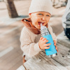 Dankzij het verwisselbare topsysteem groeit de fles mee met elke levensfase: van babyfles tot sportfles. Voor kinderen zijn er tops met speen, tuit of kinderrietje; voor grotere kinderen en volwassenen zijn er sportdoppen en sportrietjes. Zo gebruik je dezelfde fles jarenlang, op elke leeftijd.