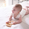 Dankzij deze bijtring van natuurlijk rubber kan je baby comfortabel op verschillende onderdelen bijten (oren, poten, de bloem en de ring). Gezond en natuurlijk, met reliëfoppervlakken die het tandvlees masseren en helpen de pijn van doorkomende tandjes te verzachten. Licht van gewicht en dankzij de ring en de bloem gemakkelijk vast te pakken door kleine handjes.